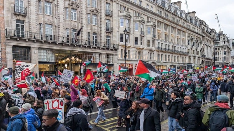 Pro-Palestine supporters marched through central London today, gathering at Hyde Park Corner for the monthly national rally. Speaking to Iran Press, protesters called on the U.K. to stop exporting weapons to Israel. They also criticized politicians, including Keir Starmer, questioning the government’s role in ongoing violence in the West Bank and expressing doubt over recent ceasefire claims.