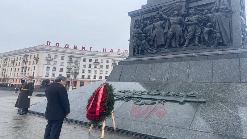 - Before arriving at the Independence Palace, the Iranian foreign minister visited Belarus’ Victory Square, where he laid a wreath to commemorate those killed during World War II.