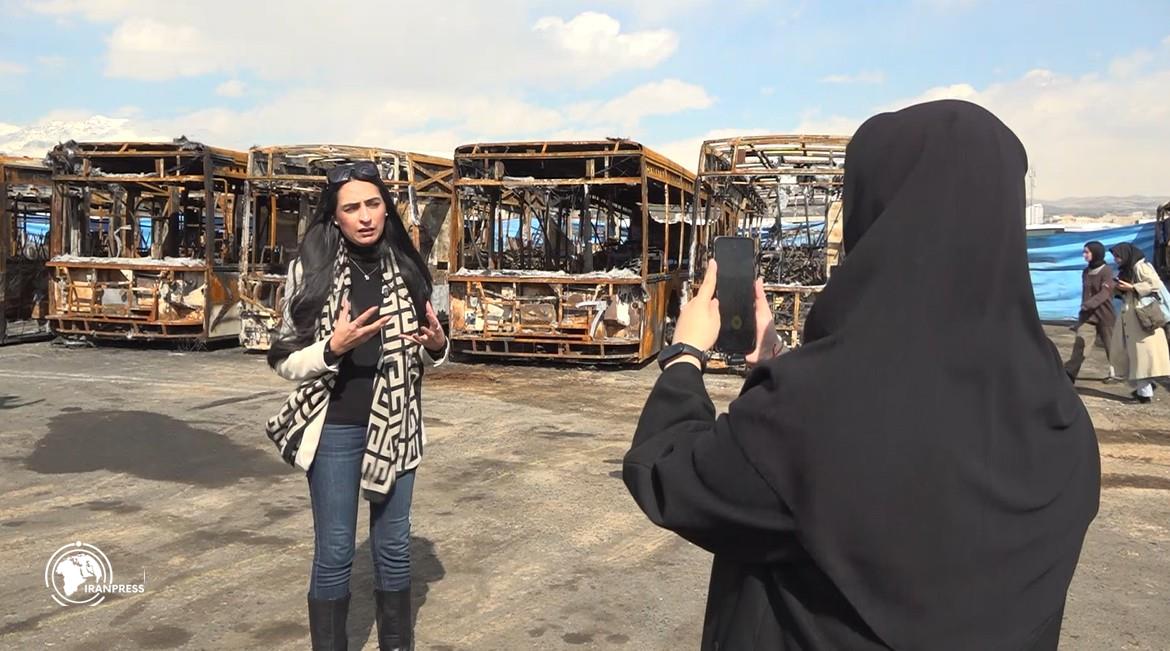 A group of foreign journalists invited to Iran by Sobh Media Center visited today the places damaged by the rioters in recent U.S.-Israeli-backed unrest.